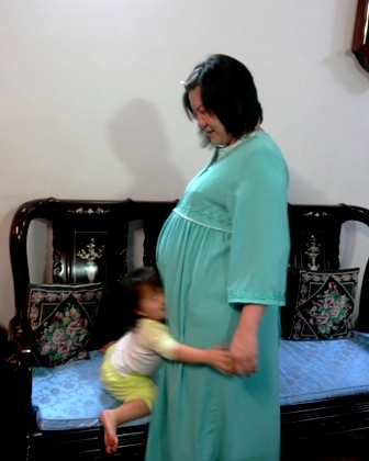 寶貝....,媽咪答應你,你一出生之後就是完全你優先啦!要不然我幹嘛費這麼大工夫弄個女傭來帶你姐咧?你就乖乖再待個至少廿三天等爸爸回來你就可以出來爭寵啦!麻煩這廿多天多照顧你媽咪我吧。