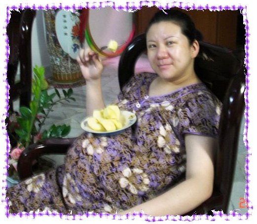 老公拿著相機準備要帶去醫院,我就現場表演肚子放盤子拍張照片留念。媽終於裝扮好下來,吃了早餐,就開始把已經準備好的東西放好,再一邊補上一壺熱滾滾的紅棗茶等瑣碎東西。然後看看時鐘說,